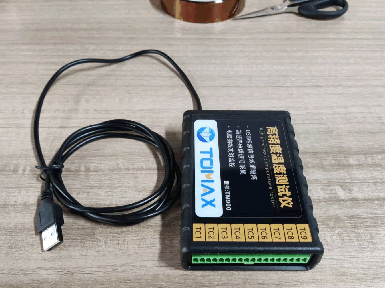 标准配件包含TM900型温度记录仪主机一台,热电偶9根一套,高温胶布一卷,剪刀一把,合格证一张,保修卡一张,说明书一本。